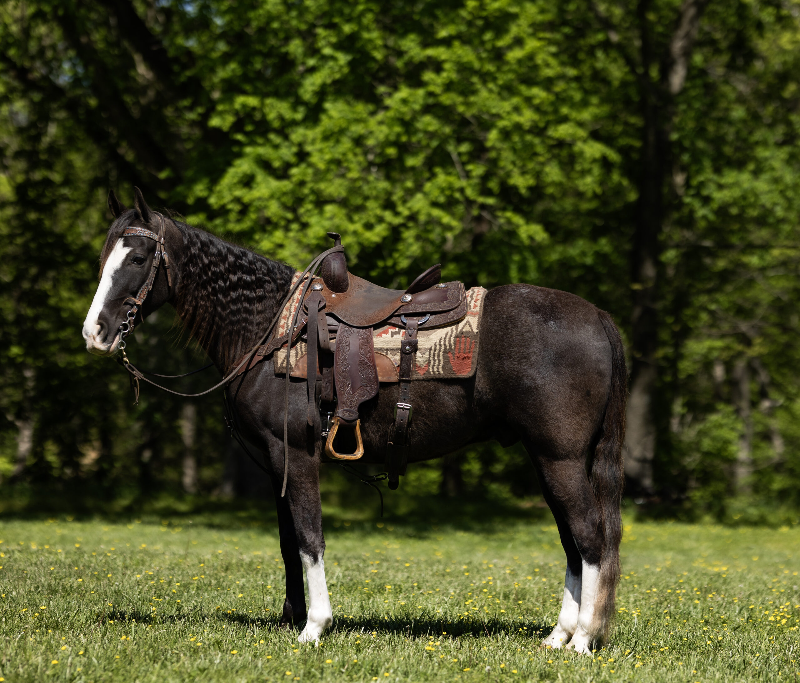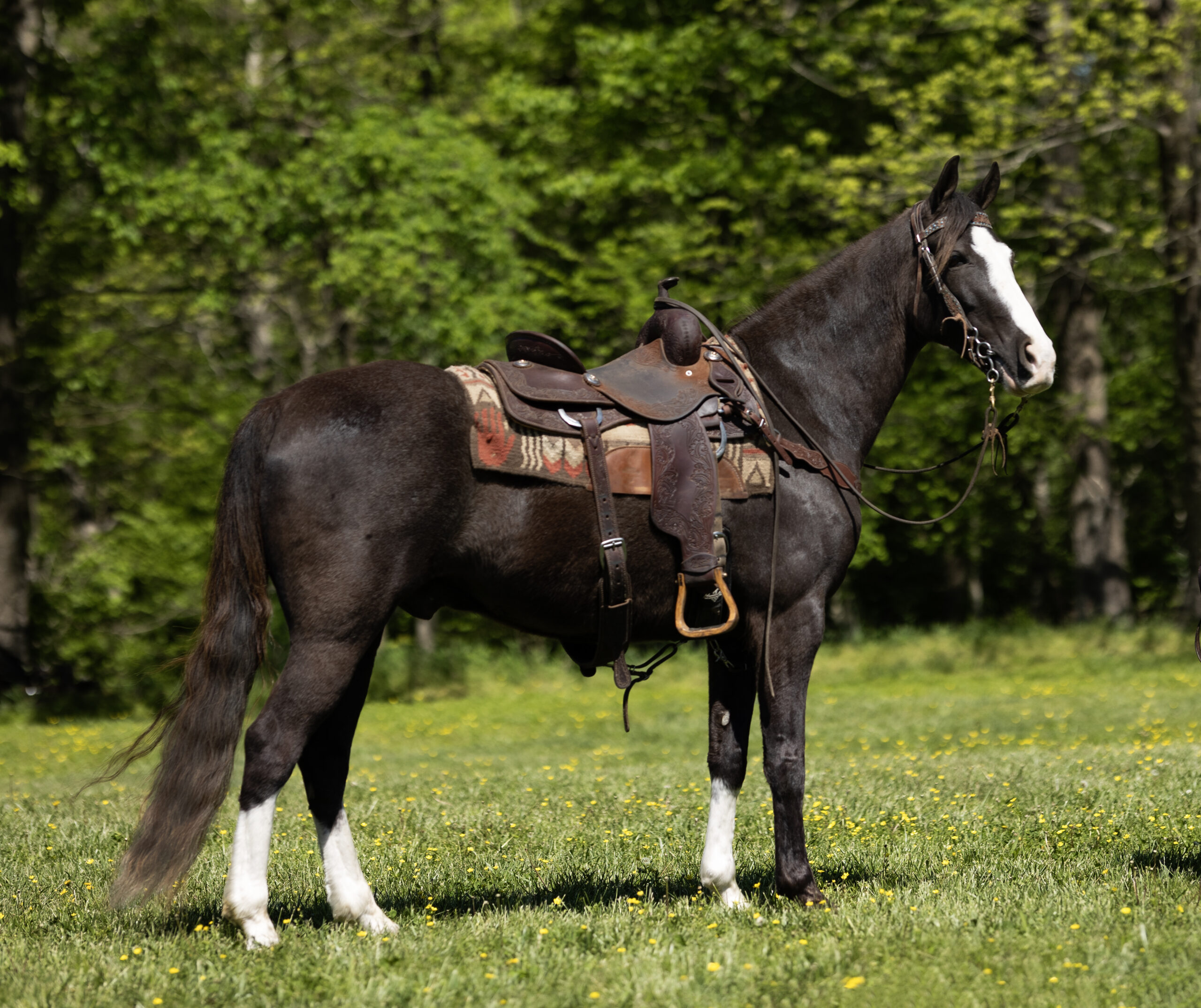 “Cooper” is a gorgeous Registered Tennessee Walker gelding that’s hard to overlook once you spend any time around him. He is 8 years old and stands 15.1 hands, built the way you hope they are and carrying himself with a quiet confidence that matches his kind, level-headed personality. His pedigree runs deep, being an own grandson of The Pusher on the bottom side and Jose’ Jose’ on the top. It’s the kind of lineage people search for, but more importantly it shows up in who he is every day in his mind, his movement, and the way he handles himself. Out on the trail, Cooper is everything people mean when they talk about a dream ride. He’s as smooth as silk with a natural way of traveling and a beautiful headset that comes easy to him. He adjusts naturally to his rider, whether you’re wanting a relaxed, easy walk or asking him to step up and move out, and when asked he’ll roll right into a soft, smooth canter without any fuss. He’s the kind that gives you confidence wherever you take him and will go anywhere you point him without hesitation through water, over logs, and across whatever terrain you come across. He’s just as content heading out alone as he is riding in a group and is comfortable in any position. He’s been exposed to the real world and takes it all in stride including traffic, farm equipment, ATVs, wildlife, dogs, and bicycles, staying steady, patient, and focused on his rider. Around the barn he’s just as enjoyable. He stands quietly to mount, ties well, and genuinely seems to enjoy being bathed and groomed. He tacks up without a fuss, is respectful for the farrier, and picks up all four feet easily. He loads and hauls like you’d expect from one that’s been handled right. Cooper isn’t something you come across every day. He’s the kind that sticks with you and the kind you look forward to swinging a leg over whether it’s for a short ride or a long day on the trail. For more information contact (573) 270-4490.